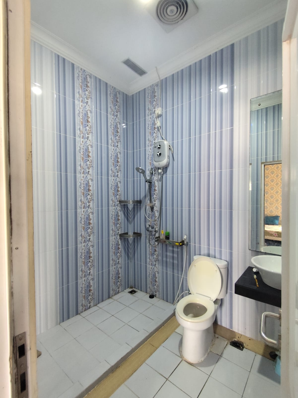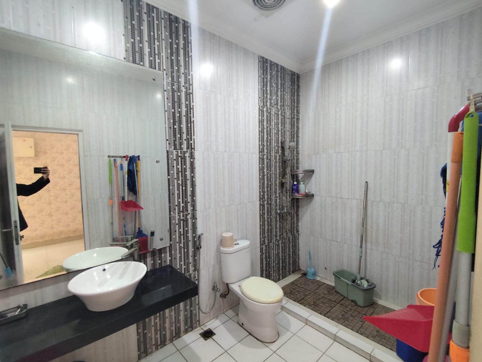 2 lemari pakaian, 2 bathtub, meja rias di kamar utama, lampu hias, wastafel dan cermin disetiap kamar mandi