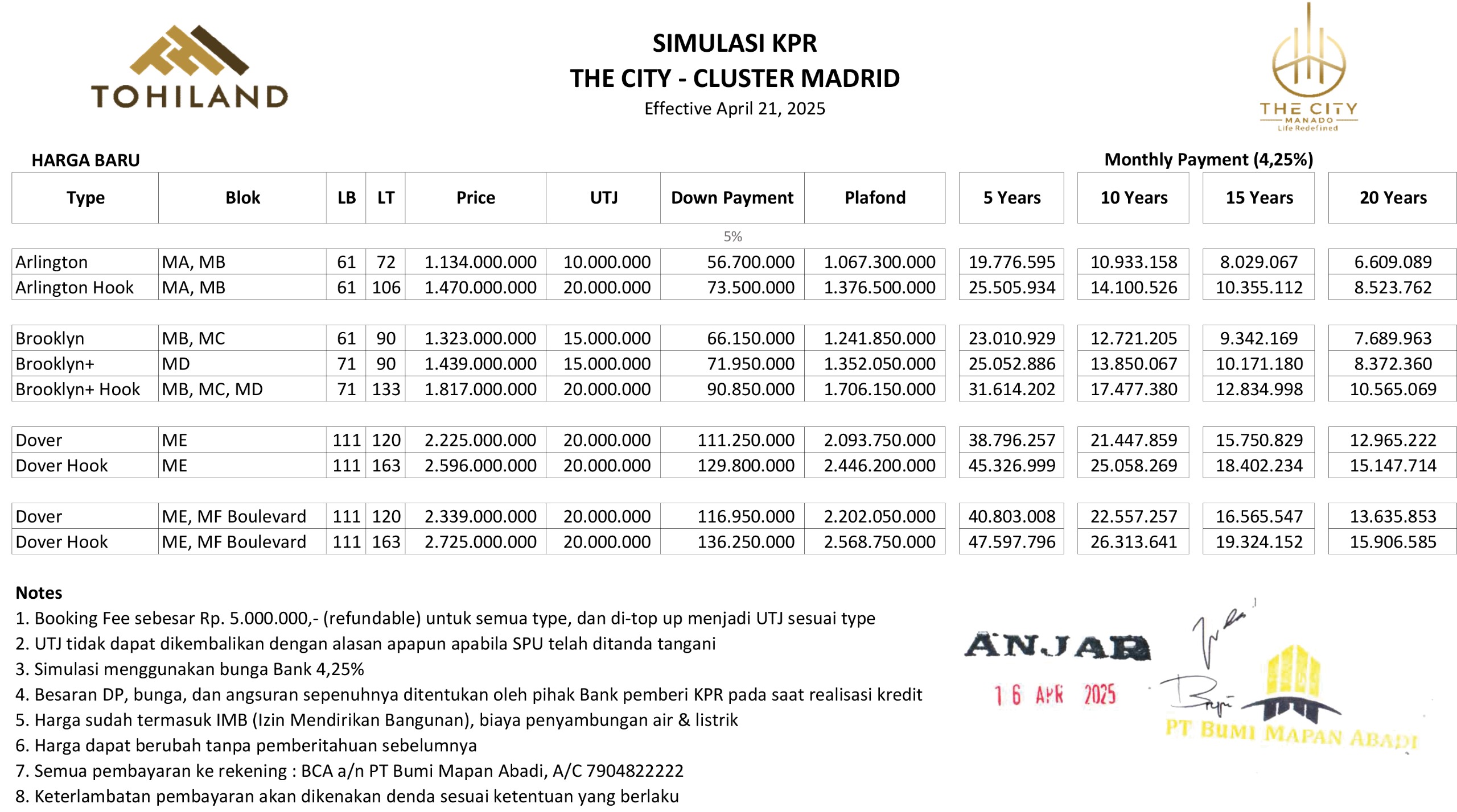 - Diskon DP 5% dari harga rumah utk Cluster Madrid dan London
