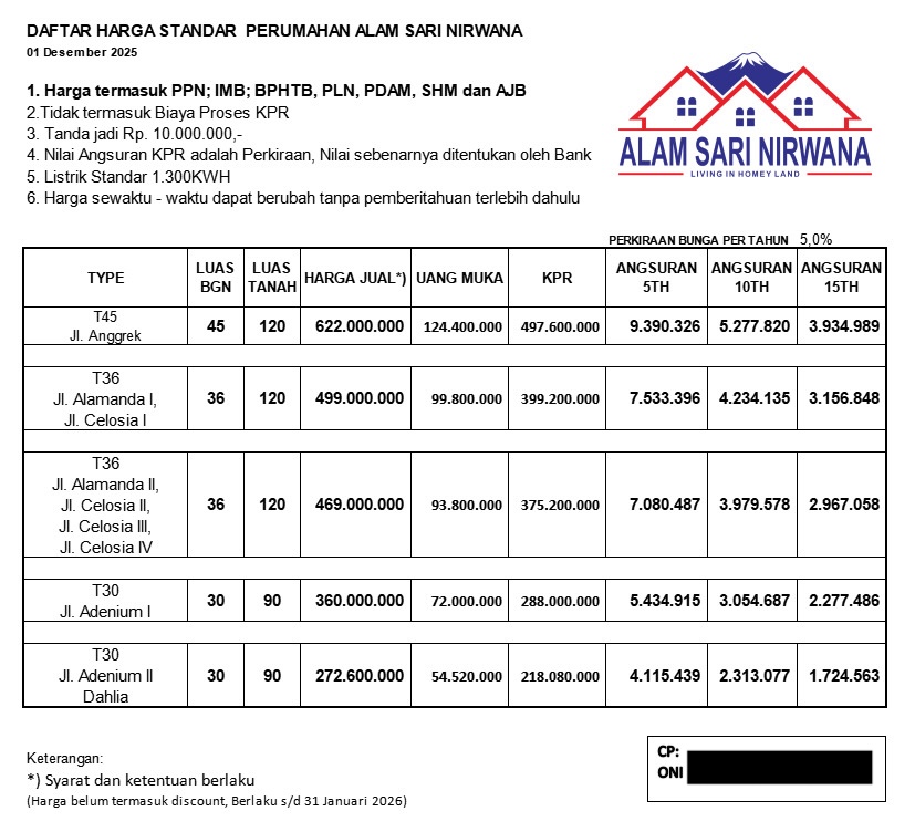 Pilih tipe properti di ALAM SARI NIRWANA